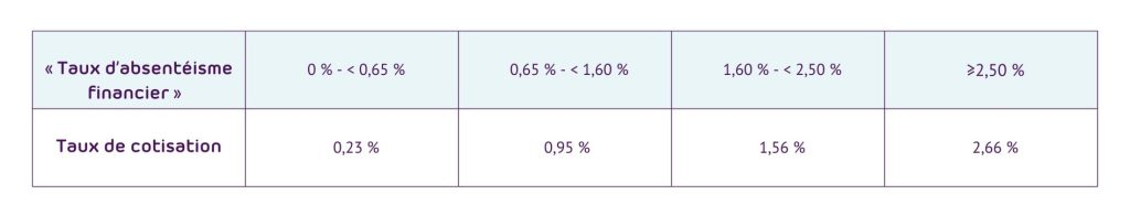 (2) Le taux de cotisation unique , fixé à 0,65% pour l’année 2026, est multiplié pour chaque entreprise par son facteur bonus-malus qui pourra prendre les valeurs 0,85 ; 1 ; 1,1 ; 1,3 ou 1,5.